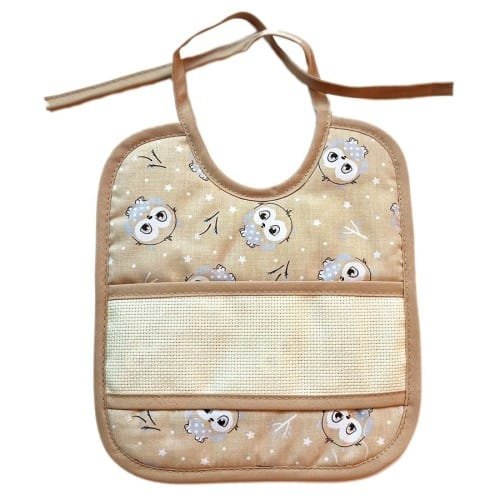 Babero Búhos Gris y Tostado para Bebé