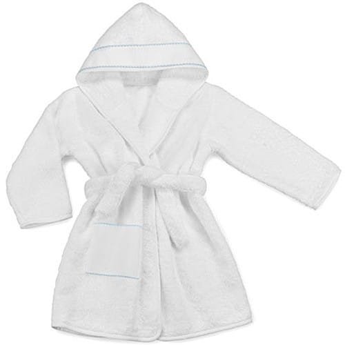 Albornoz en tela de rizo con ribete azul, rosa y blanco – Suavidad, Elegancia y Protección para tu Bebé
