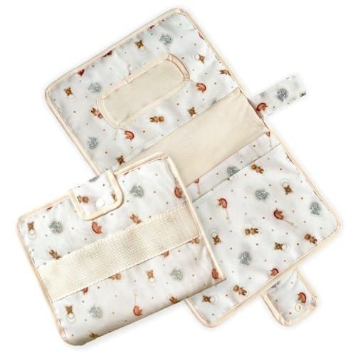 Confeccionado con materiales suaves, impermeables y de fácil limpieza, este cambiador proporciona una superficie acolchada y cómoda para tu bebé. La textura suave cuida la delicada piel del pequeño, mientras que la capa impermeable evita que los líquidos se filtren, garantizando la higiene en cada uso. Su formato plegable permite llevarlo cómodamente en el bolso de maternidad, por lo que siempre estará listo para cualquier imprevisto.